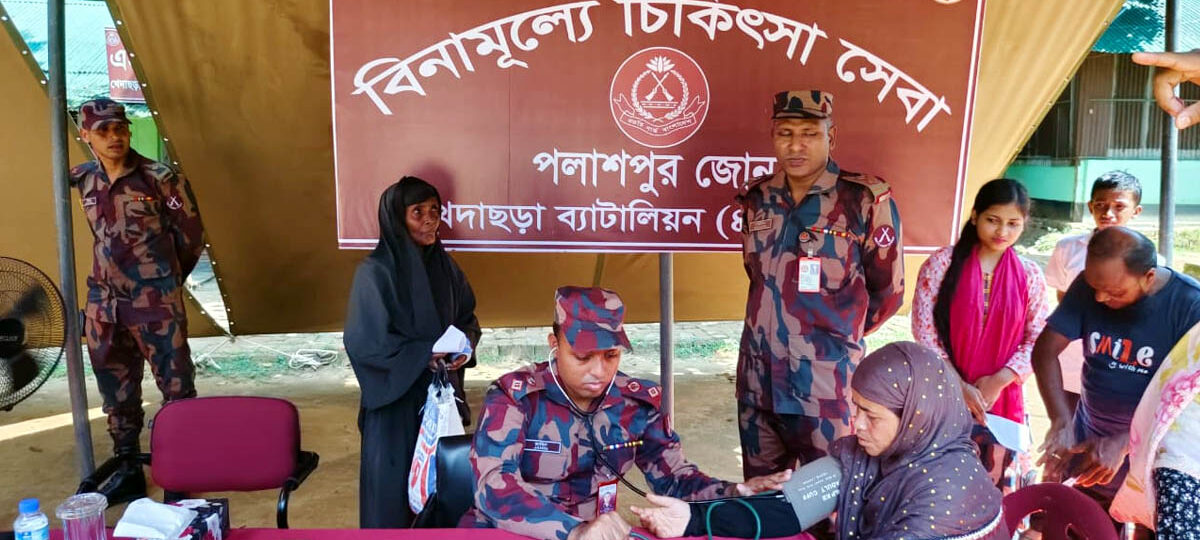 একই দিনে পলাশপুর জোন সদরে চিকিৎসা সুবিধা বঞ্চিত জনসাধারণের মাঝে দিনব্যাপী বিনামূল্যে চিকিৎসা সেবা ও ওষুধ বিতরণ করে খেদাছড়া ব্যাটালিয়ন (৪০ বিজিবি)। খেদাছড়া ব্যাটালিয়নের মেডিকেল অফিসার মেজর মো. জাহিন আবদুল্লাহর নেতৃত্বে দিনব্যাপী মেডিকেল ক্যাম্পেইনে দেড় শতাধিক গরিব ও দুঃস্থ জনসাধারণকে স্বাস্থ্যসেবা এবং বিনামূল্যে ওষুধ বিতরণ করা হয়।